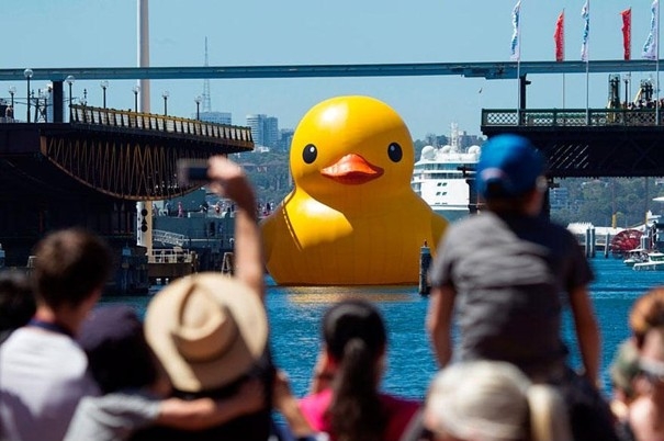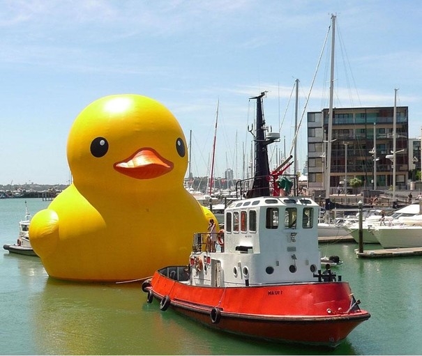 Dielo holandského umeleca Florentijna Hofmana je prakticky nemožné prehliadnuť. Obrovská nafukovacia kačička je vysoká 14 metrov! V súčasnosti pláva pri brehoch Hong Kongu a zostane tam až do 9. júna. Tento obor je veľmi typickým príkladom Florentijnového umeleckého štýlu. Tak ako on hovorí, obvykle som inšpirovaný bežnými každodennými predmetmi, ako sú papierové lode alebo sériovo vyrábané figúrky.